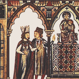 As Cantigas de Santa Maria surgem nesse contexto de construção das bases do chamado Estado Moderno e Afonso X, o rei trovador, valendo-se de uma intimidade quase que filial com Nossa Senhora, criará "catedrais de palavras", equivalentes, em arquitetura, às catedrais góticas - grandes símbolos do rei e das cidades. Catedrais escritas em galaico-português, que o rei dominava desde a infância passada na Galícia.