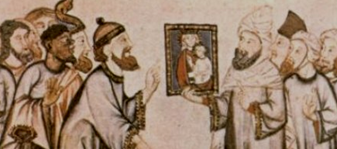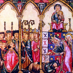 As Cantigas de Santa Maria, ou cantigas alfonsinas formam a coleção mais importante do séc.XIII. São 427 cantigas manuscritas compiladas e iluminadas na corte de Afonso X, o sábio, no scriptorium régio, na lendária escola de tradutores de Toledo, formada com os mais destacados sábios árabes, judeus e cristãos. Inúmeros documentos são ali traduzidos, como já vimos no post anterior.