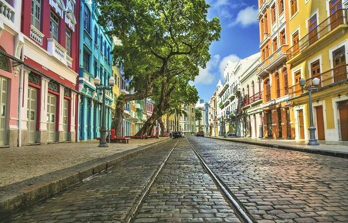 Próximo ao Marco Zero, conhecemos a rua do Bom Jesus, antiga Rua dos Judeus ( adoro observar essa tolerância religiosa rs ), que foi eleita, no final de 2019 por uma revista de arquitetura estadunidense, como a 3ª cidade mais bonita do mundo. Nela, encontramos a primeira sinagoga construída nas Américas, infelizmente estava fechada para visitação naquele dia. No final da rua, na parte profana, fica a Embaixada de Pernambuco, com o museu dos bonecos gigantes de Olinda, onde brincamos de dançar frevo.
